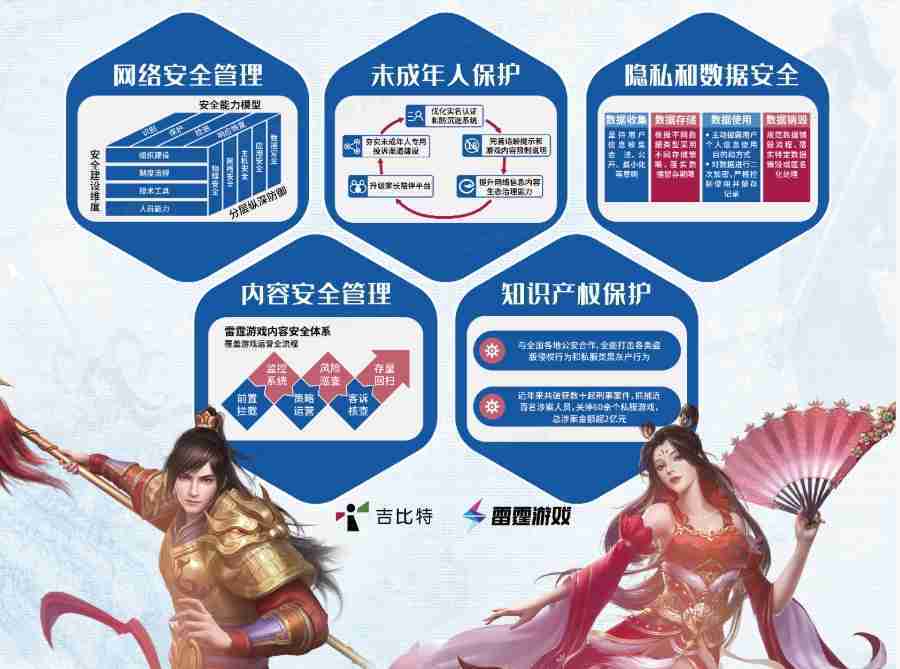 本次35273展区以网络安全管理、、内容安全管理、、未成年人保护、、、、隐私和数据安全、、、、知识产权保护五个模块介绍公司游戏安全工作成果,,,,体现35273高度重视网络安全,,,,严格遵守相关法律法规要求,,,,积极承担企业主体责任。。。。