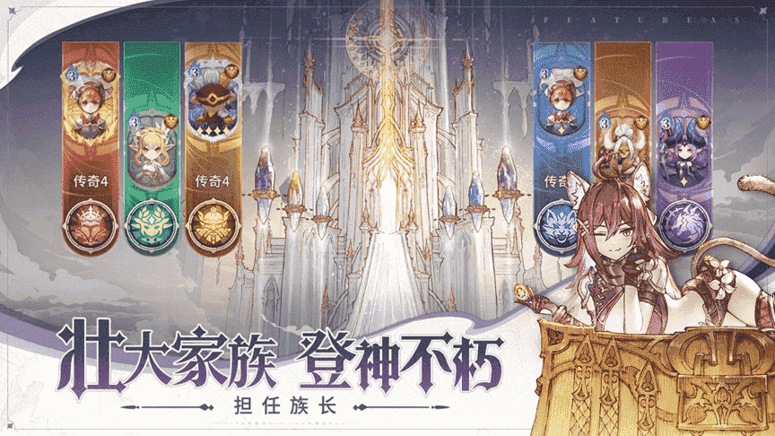你将体验到纯正王道的冒险剧情,,,在这个被伪神入侵的凯斯世界,,,,成神是每一位强者的终极目标,,,,玩家作为守护者家族的族长,,,,在寻回六大种族成员,,,,击退威胁凯斯世界的伪神后,,即有机会带领家族晋升为神,,,,登神不朽。。。