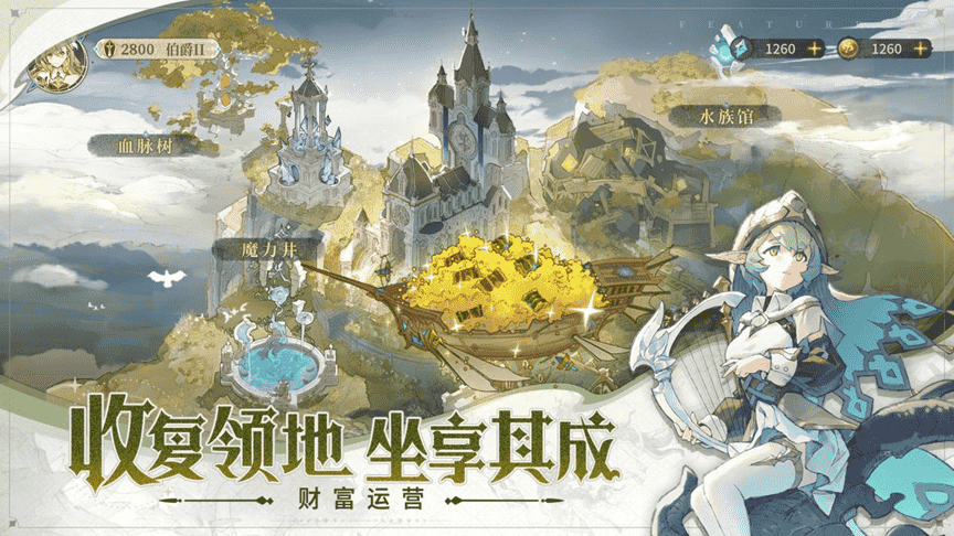 随着冒险推进,,,,你可以陆续解锁各大王国的资源地块,,,这些地块将为家族庄园带来源源不断的资源助力,,帮助家族团队升阶成长。。。据说,,,某些地块还是绝佳的钓鱼消遣据点......